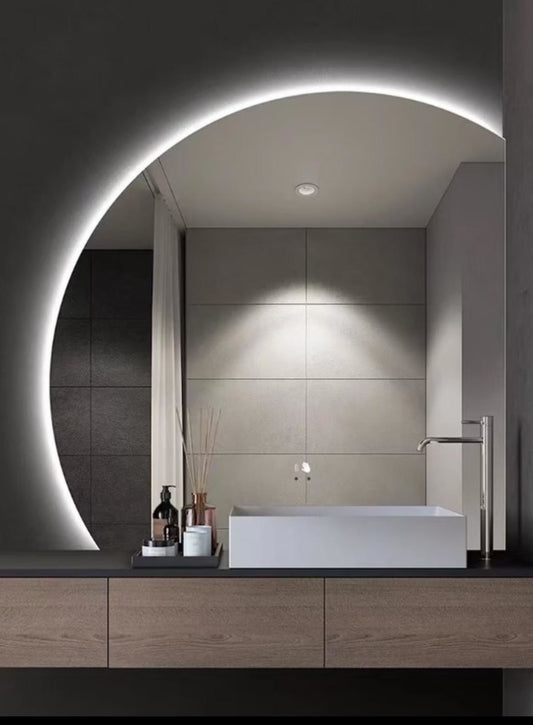 Bring sculptural elegance and modern lighting into your home with this half-circle LED wall mirror — a true statement piece that blends soft light and architectural shape.Perfect for bathrooms, entryways,...