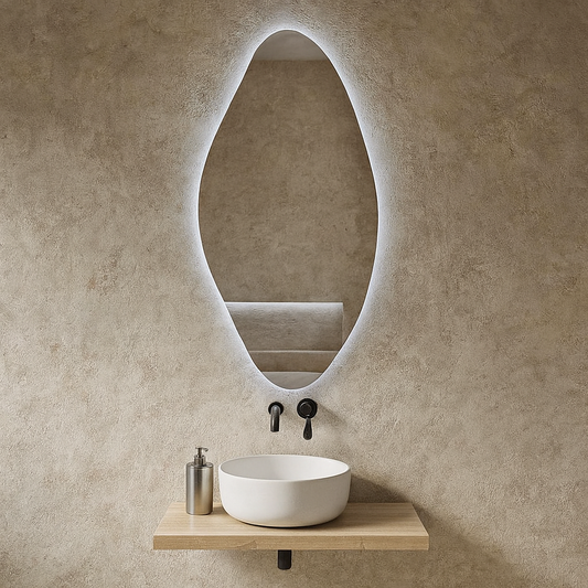Bring elegance and serenity to your interior with this organic oval LED bathroom mirror, combining modern lighting with a handcrafted minimalist design.Its soft backlight and sculptural shape make it a...