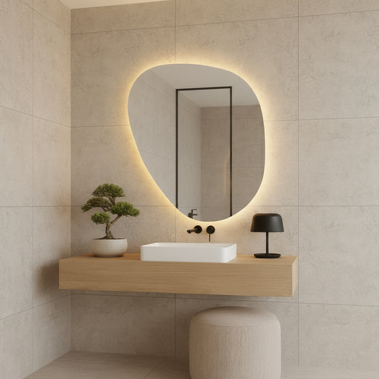 This modern irregular LED mirror brings artistic character and soft illumination to any space. With a distinctive sculptural shape and warm ambient glow, it blends luxury and creativity in one...