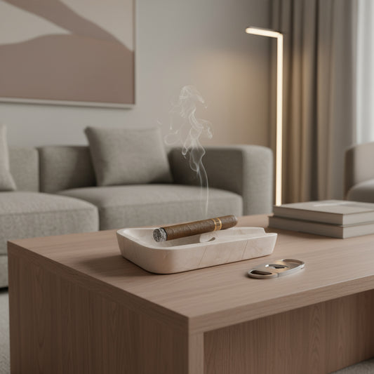 Elevate your cigar experience with this hand-crafted grey marble cigar ashtray, carved entirely from a solid block of natural stone. Its smooth polished bowl, deep cigar rest, and timeless veining...