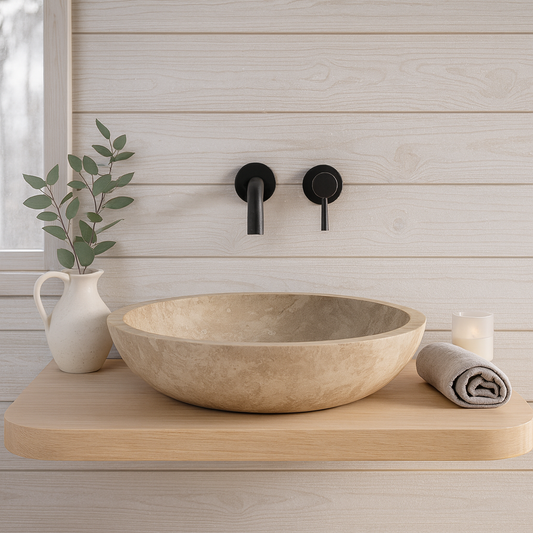 Bring timeless elegance into your bathroom with this Light Travertine Marble Sink, handcrafted from a single block of natural stone. Its soft beige tones, gentle texture, and warm earth-colored variations...