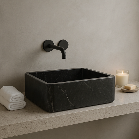 Bring dramatic elegance into your bathroom with this luxury Toros Black Marble Sink, carved from a whole block of natural stone. Known for its deep charcoal tone and striking white...