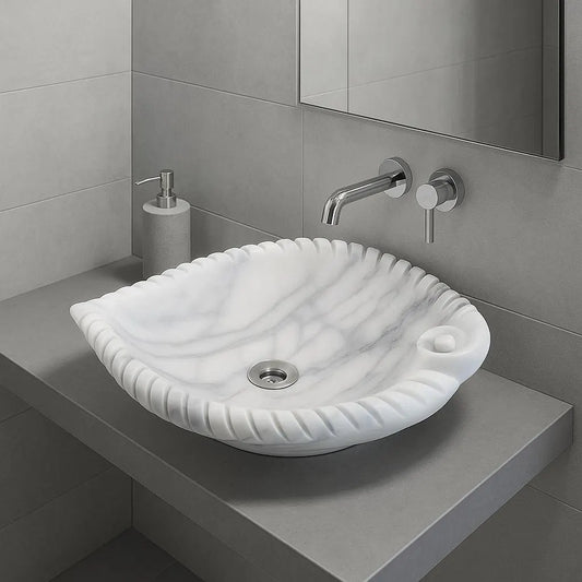 🌟 Luxury Marble Sink – Hand-Carved Shell-Shape Stone Basin Give your bathroom a timeless, elevated look with this handcrafted natural marble sink, shaped like an elegant seashell. Carved from a...