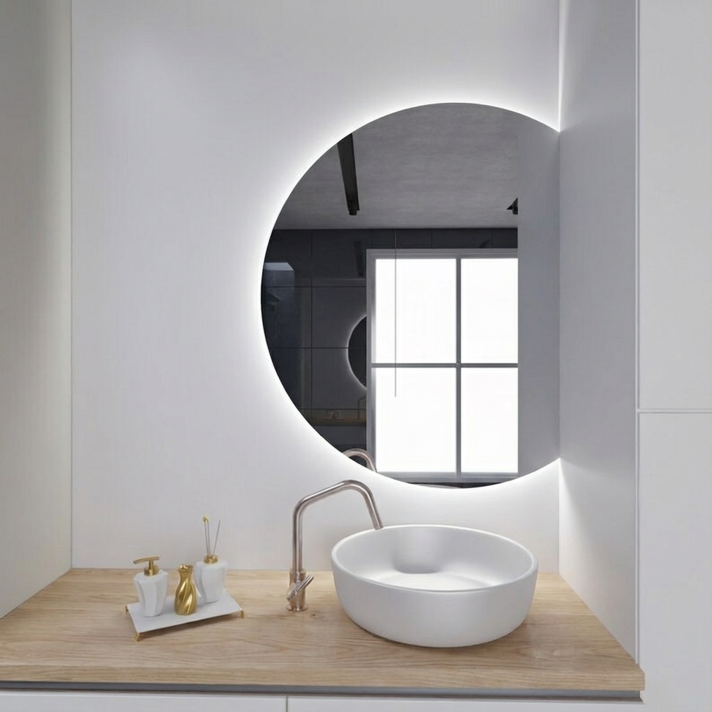 Elevate your space with this modern round LED bathroom mirror, designed to bring timeless elegance and practical lighting to your interior.