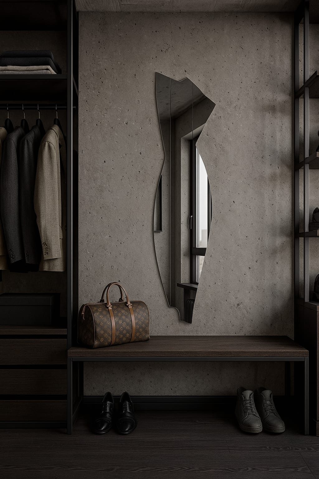 Its sculptural, abstract silhouette creates a gallery-style focal point — perfect for bedrooms, hallways, walk-in closets, and dressing rooms.