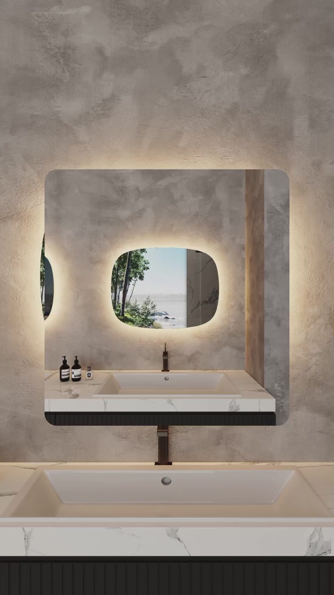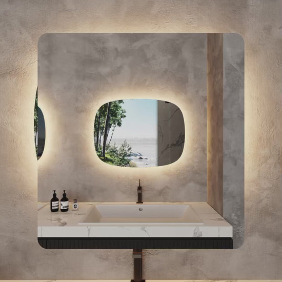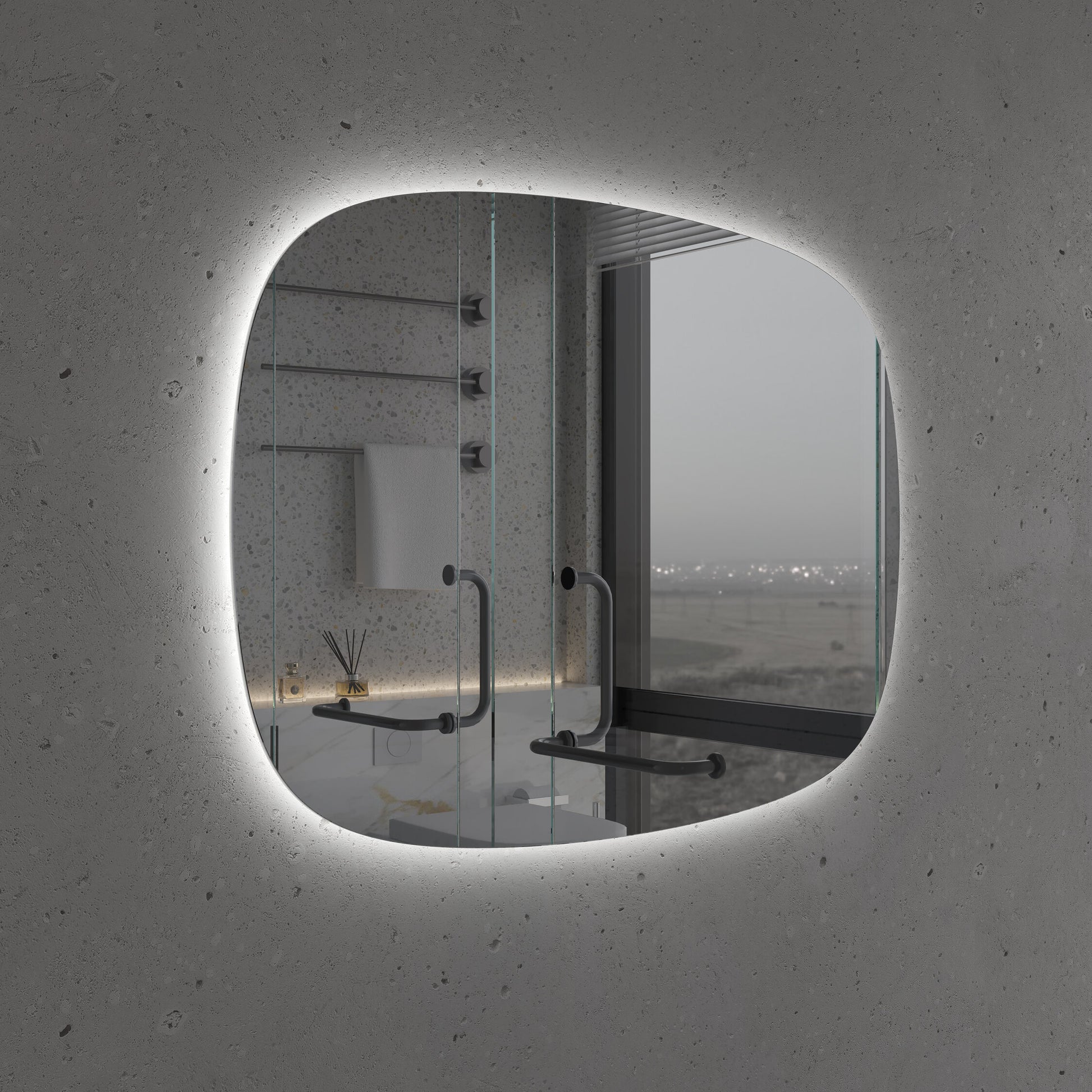 Transform your space with this modern asymmetrical LED backlit mirror, designed to blend artistic form with functional light. The softly curved silhouette and ambient backlight add a sculptural element to your bathroom, bedroom, or hallway.