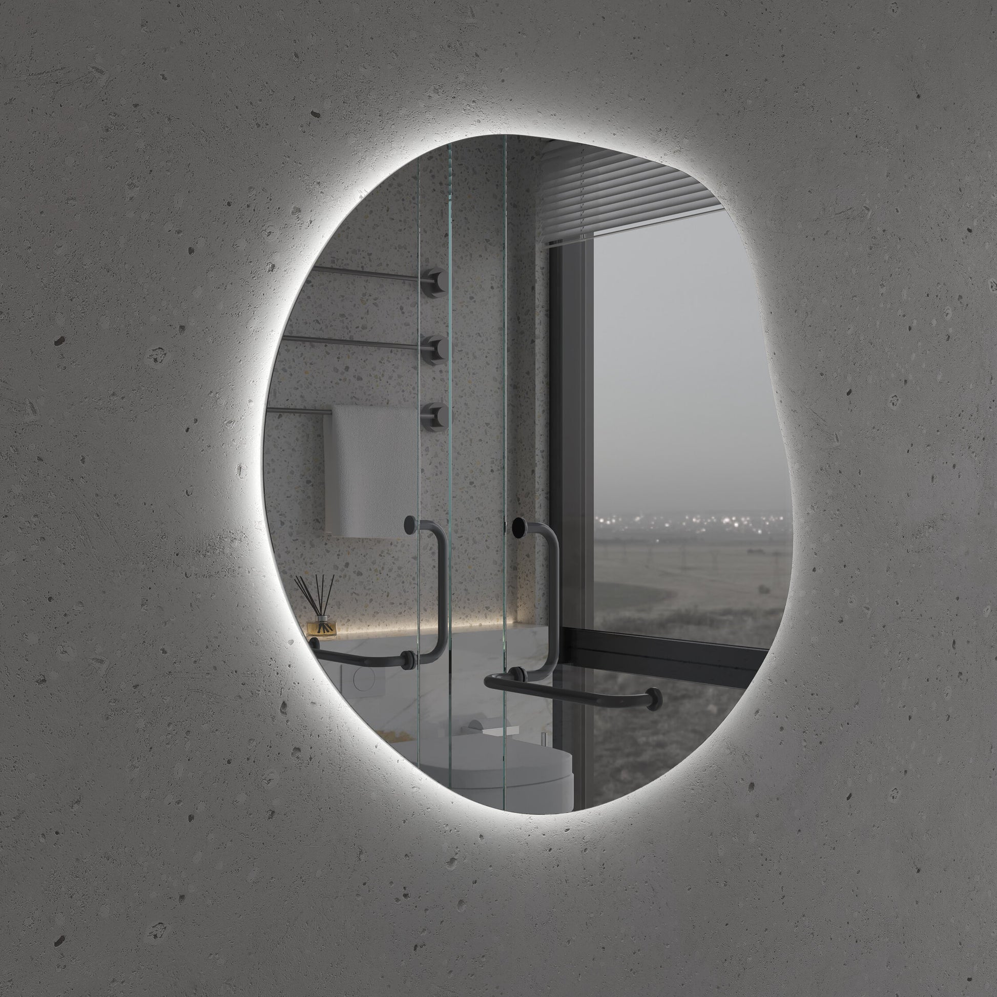 Bring a touch of art and modern elegance into your interior with this asymmetrical LED backlit mirror. Its soft organic shape and ambient glow create a warm, luxurious atmosphere — perfect for bathrooms, vanities, or living spaces.