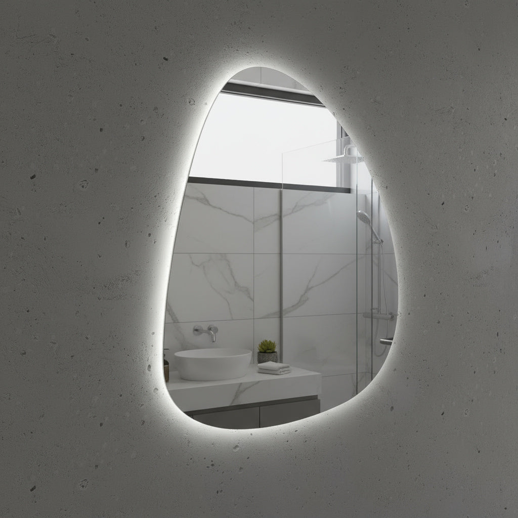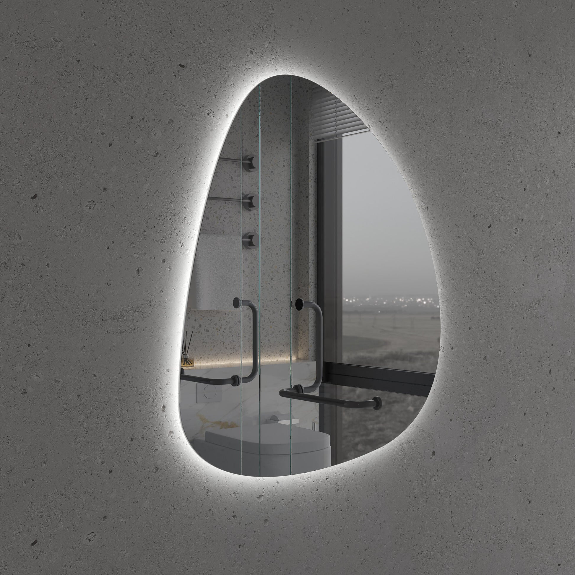 Create a sophisticated and artistic atmosphere in your home with this asymmetrical LED backlit wall mirror.