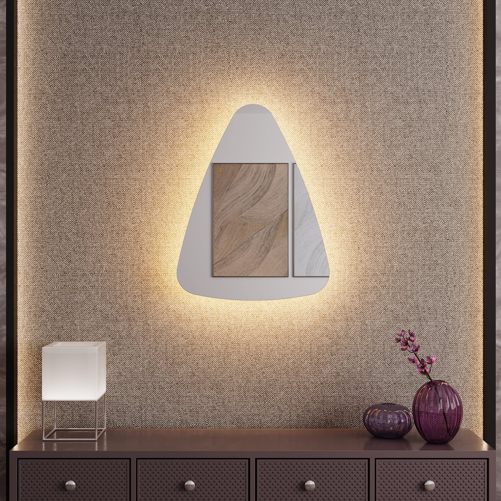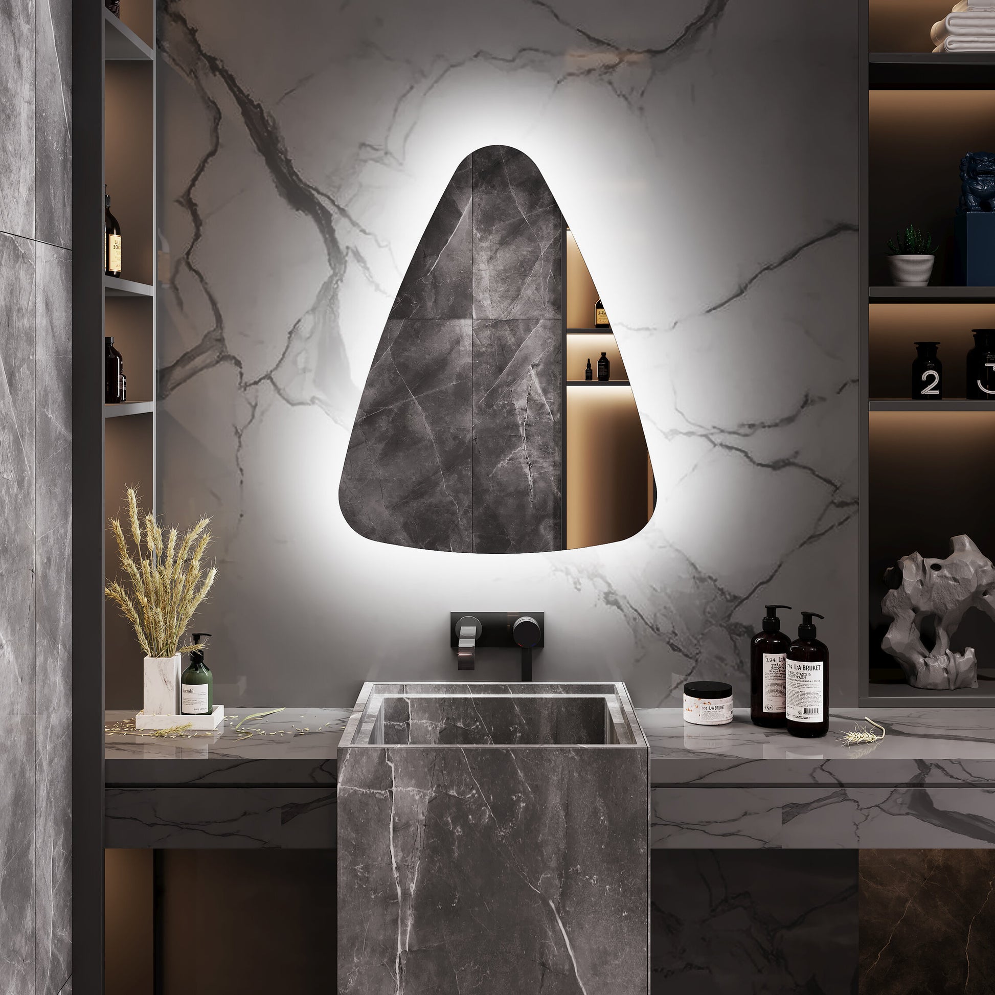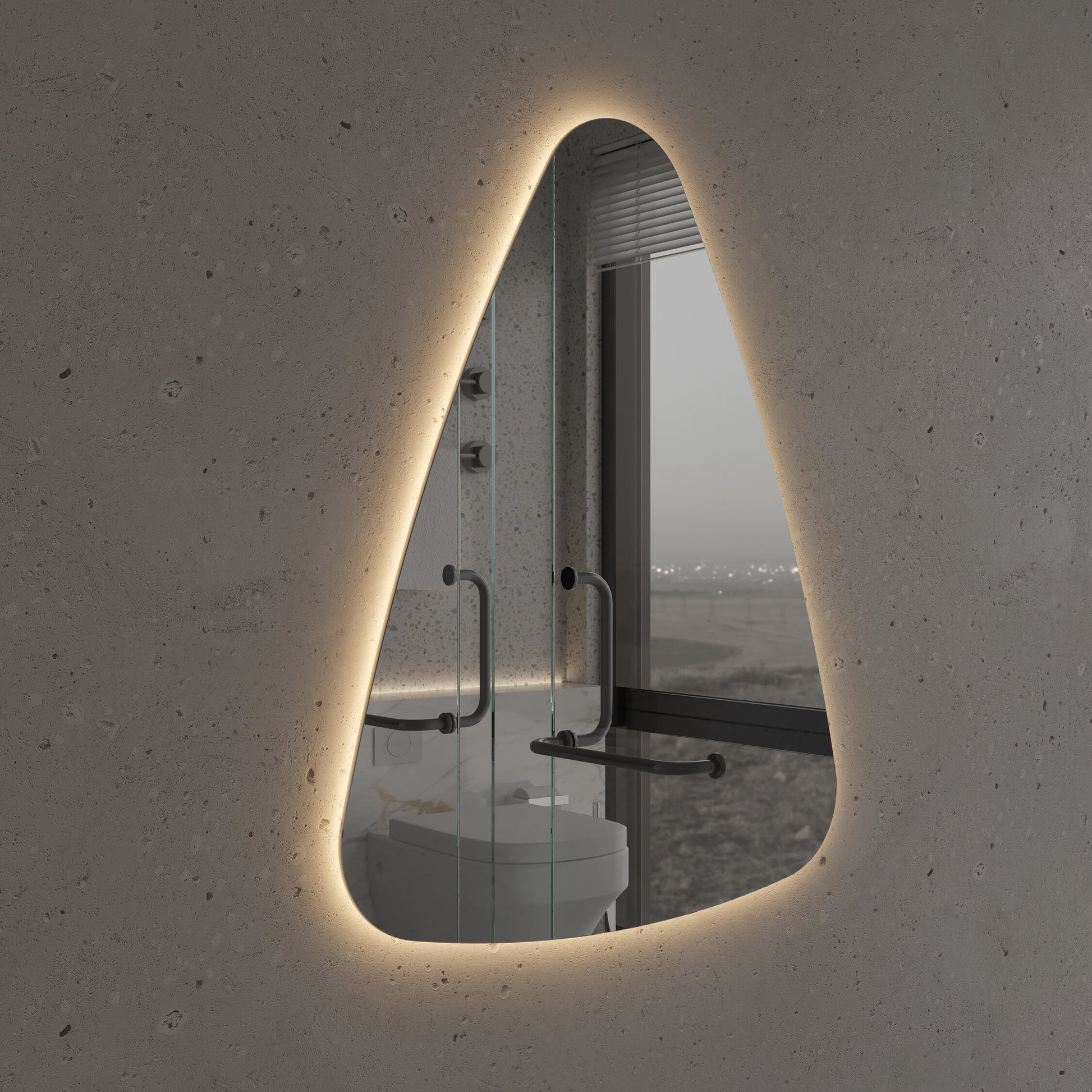 Enhance your interior with a statement piece — a modern asymmetrical LED backlit mirror designed for contemporary spaces.