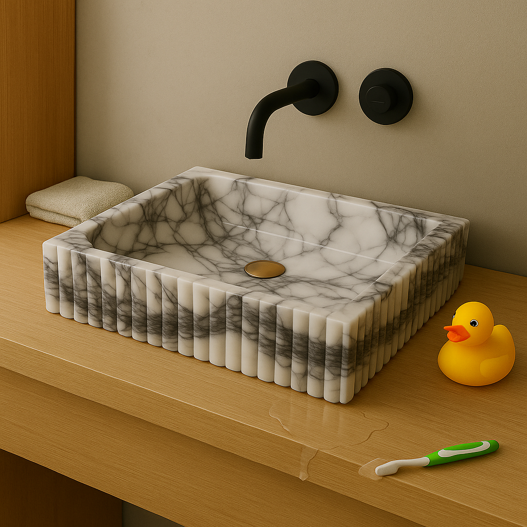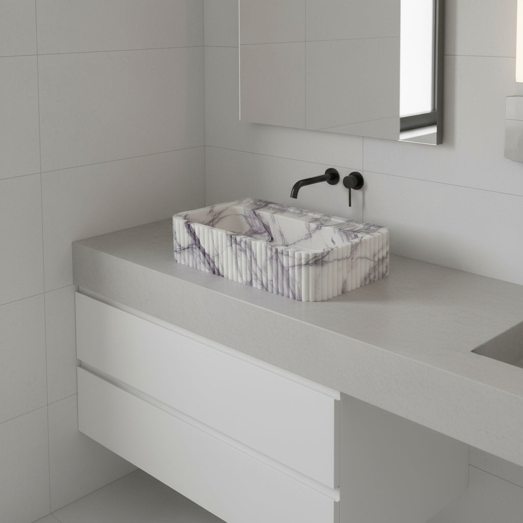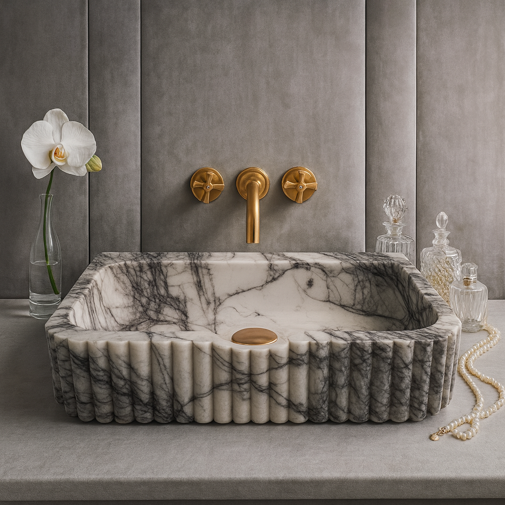 Crafted from authentic New York Marble, this wall-mounted bathroom sink combines elevated design with everyday practicality. The ribbed/fluted texture adds sculptural depth, while the spacious rectangular basin makes it perfect for residential and commercial interiors.