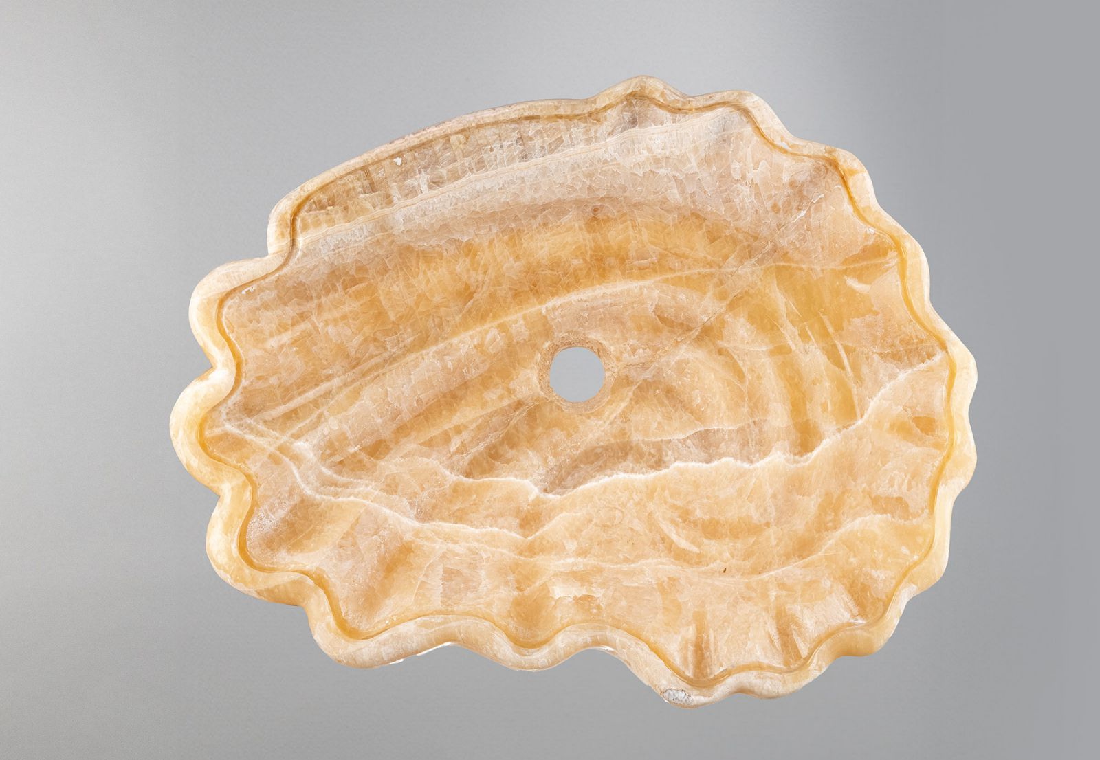 This exclusive marble vessel sink is sculpted from a single block of amber onyx marble — known for its luminous, warm golden tones and natural crystal translucency. Each piece reflects both ancient craftsmanship and modern design sensibility.