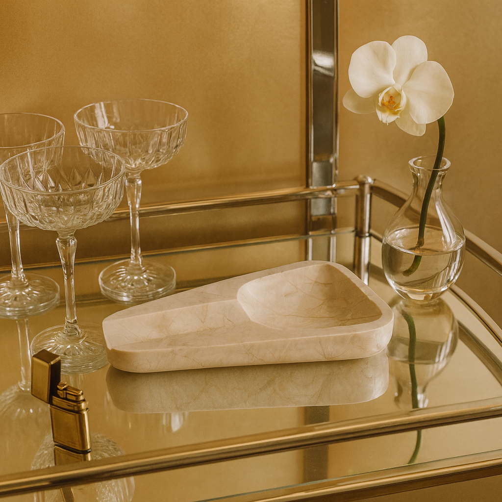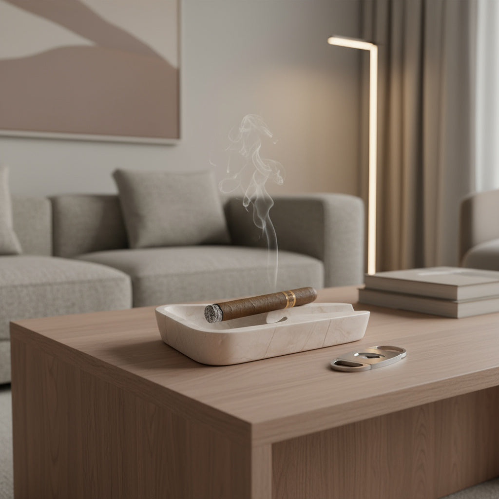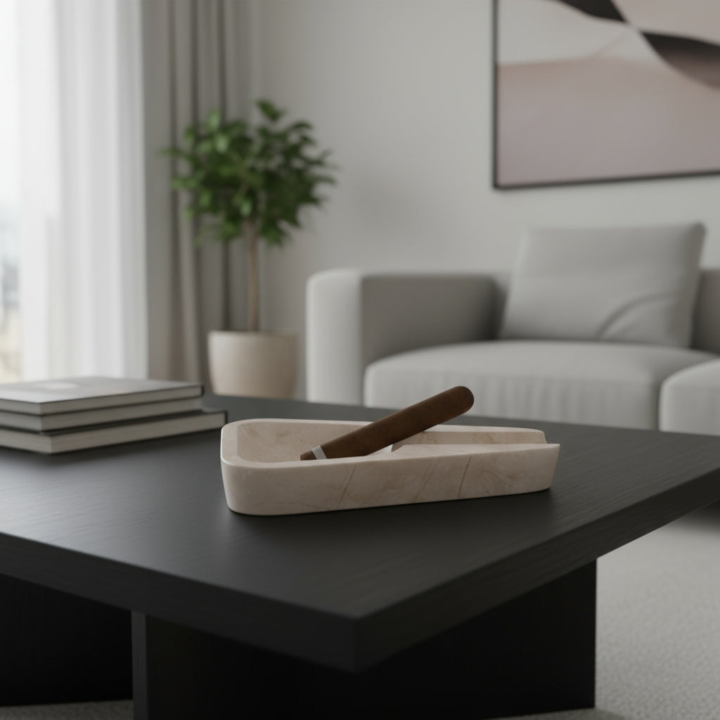 Designed with a deep bowl and carved grooves for easy placement, this ashtray brings a modern, luxurious touch to any space. Perfect for cigar enthusiasts, interior designers, and lovers of natural stone decor.