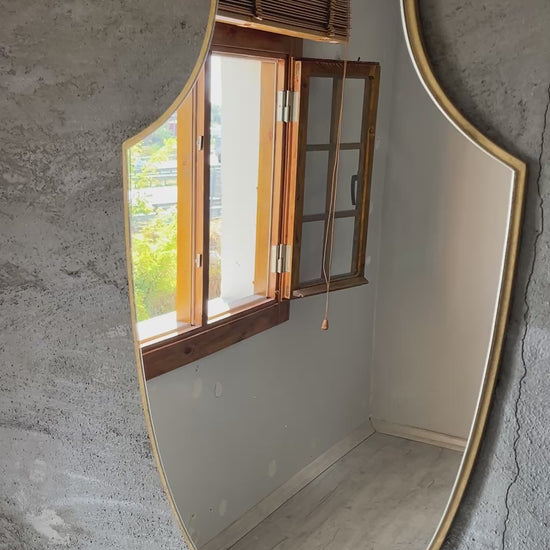 Elevate your home décor with this modern gold wall mirror — a stunning handmade piece with a unique arched shield silhouette that brings elegance and balance to any interior.