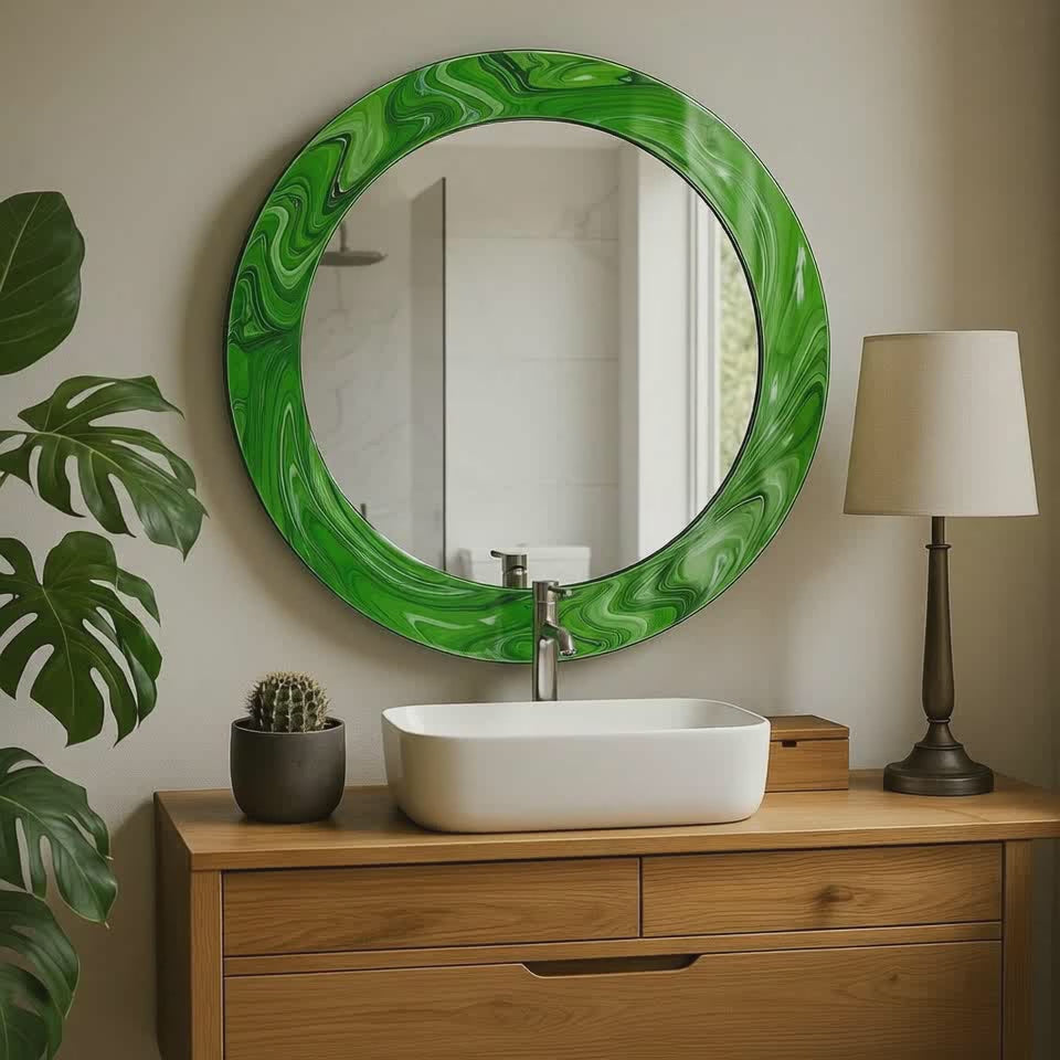 You can personalize your mirror frame with any pattern, color, or marble/glass texture.