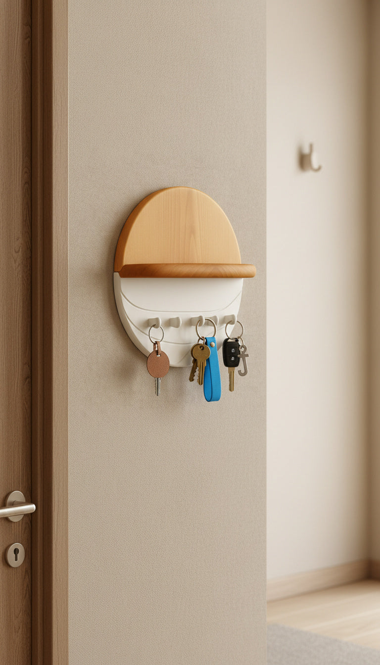 Its clean, rounded silhouette complements popular interior styles such as modern farmhouse, Scandinavian, boho, and contemporary décor. Whether placed in an entryway, hallway, mudroom, or office, this wall key organizer adds both charm and practicality.