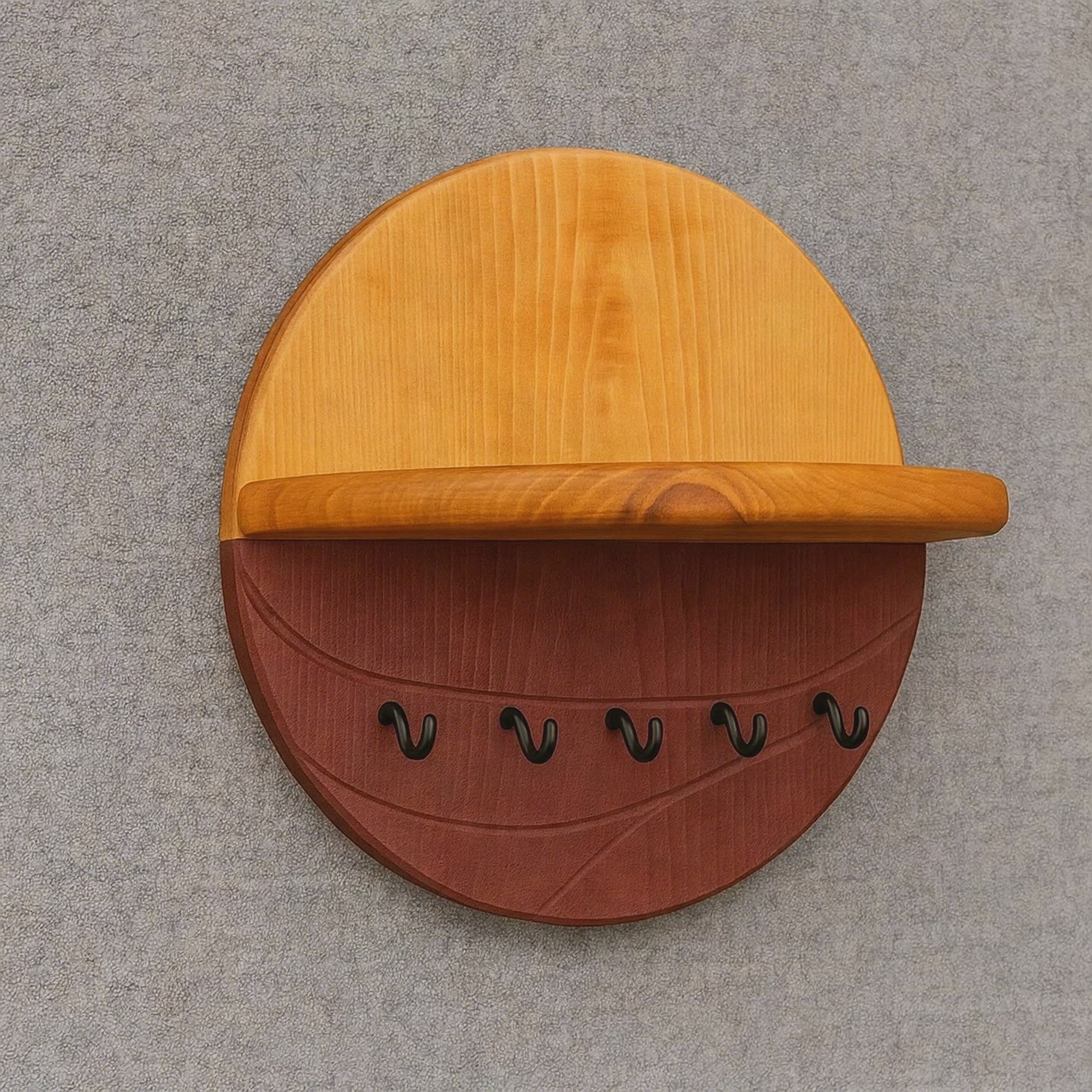 Crafted with a smooth wooden shelf and a durable matte-finish base, this entryway key holder with hooks provides a stylish solution for storing keys, keychains, lanyards, and small daily essentials. The top shelf is ideal for wallets, sunglasses, mail, or small décor accents, helping reduce clutter the moment you walk in.