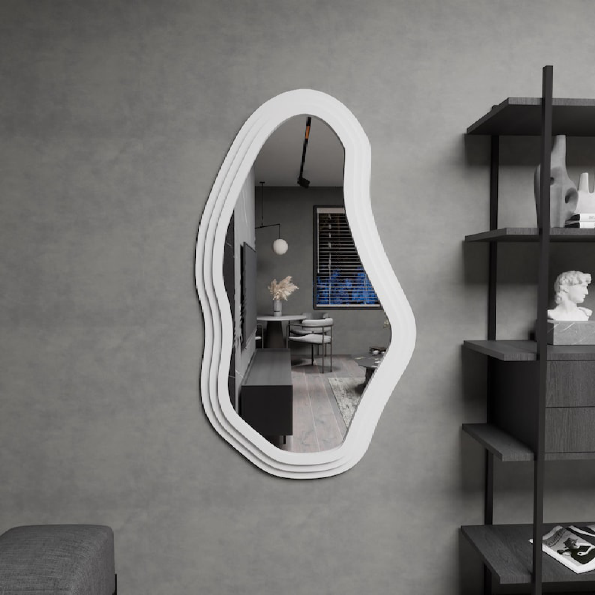 Bring contemporary art into your home with this irregular-shape wall mirror, perfect for living rooms, bedrooms, and hallways. The sculptural frame design adds depth and personality to any interior style — from modern minimalism to boho chic.