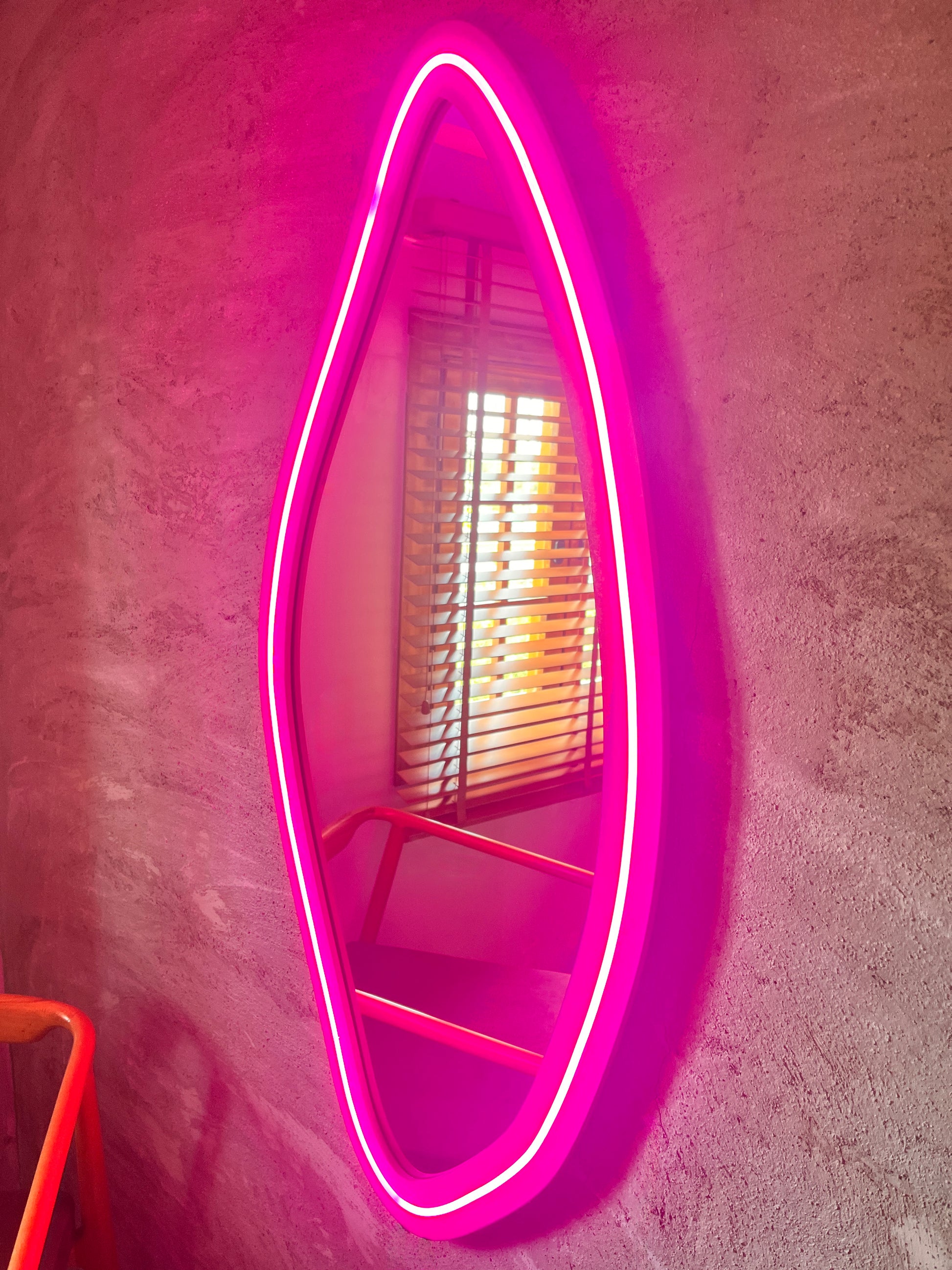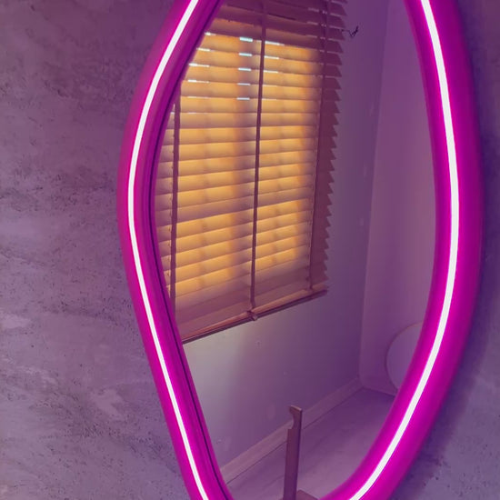 Turn any room into a vibrant statement space with this neon LED irregular mirror, crafted from high-quality MDF and designed to combine art, light, and reflection. Whether you want a glowing bedroom mirror, a trendy hallway piece, or a boutique-style decor accent — this mirror instantly transforms your atmosphere.