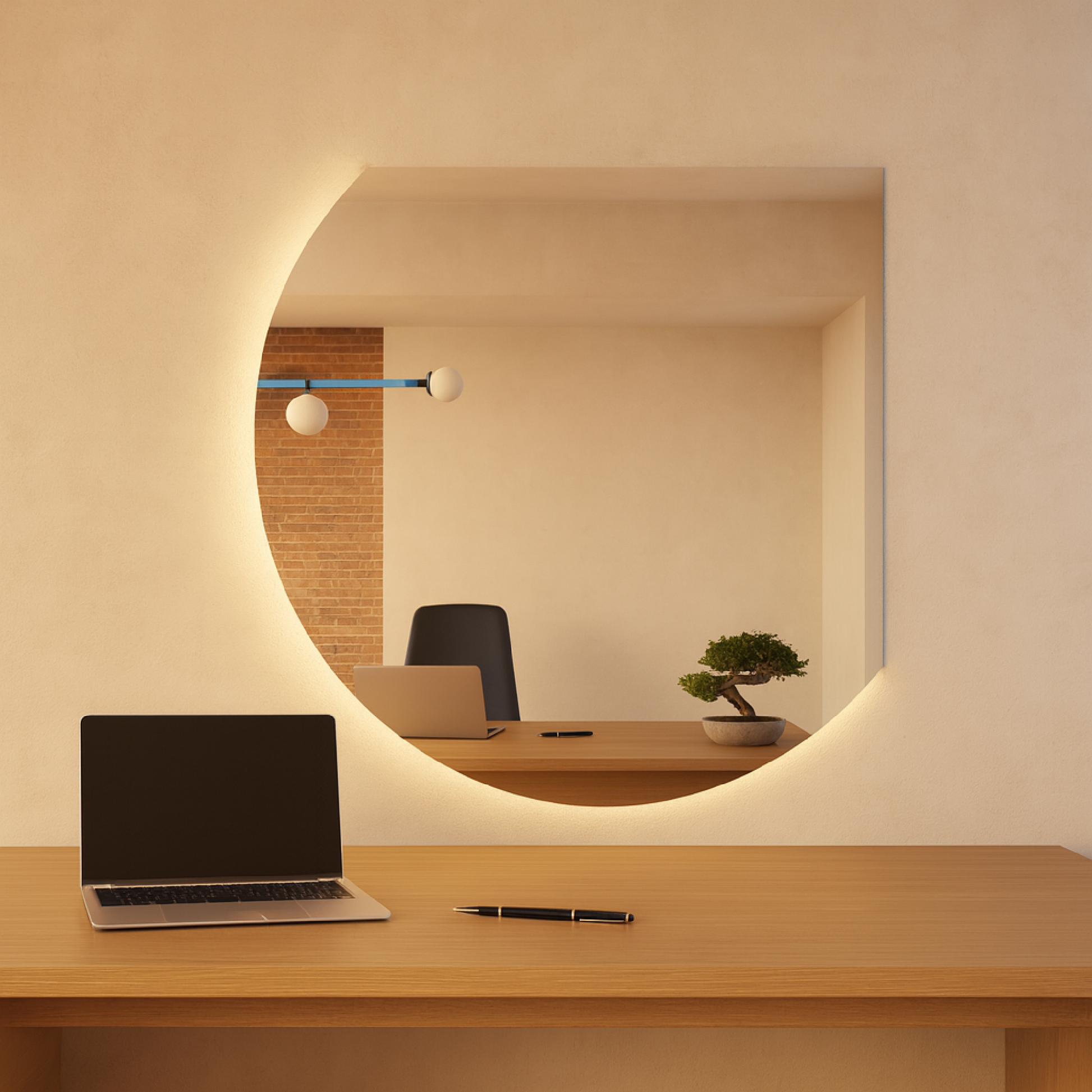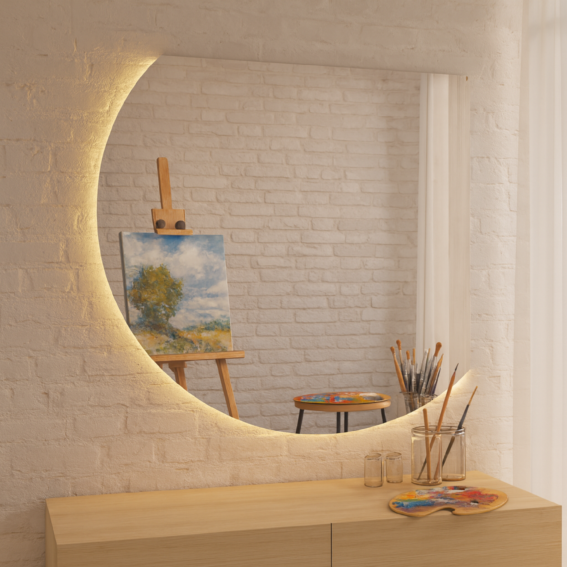 Transform your space with this Crescent LED Backlit Mirror, designed to bring sculptural elegance and soft ambient light to any modern interior.