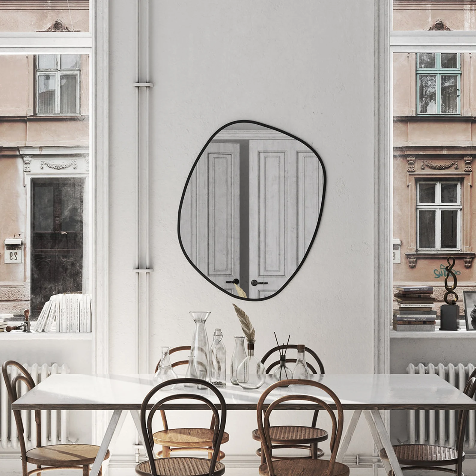 There is a wall hanger behind the mirror.