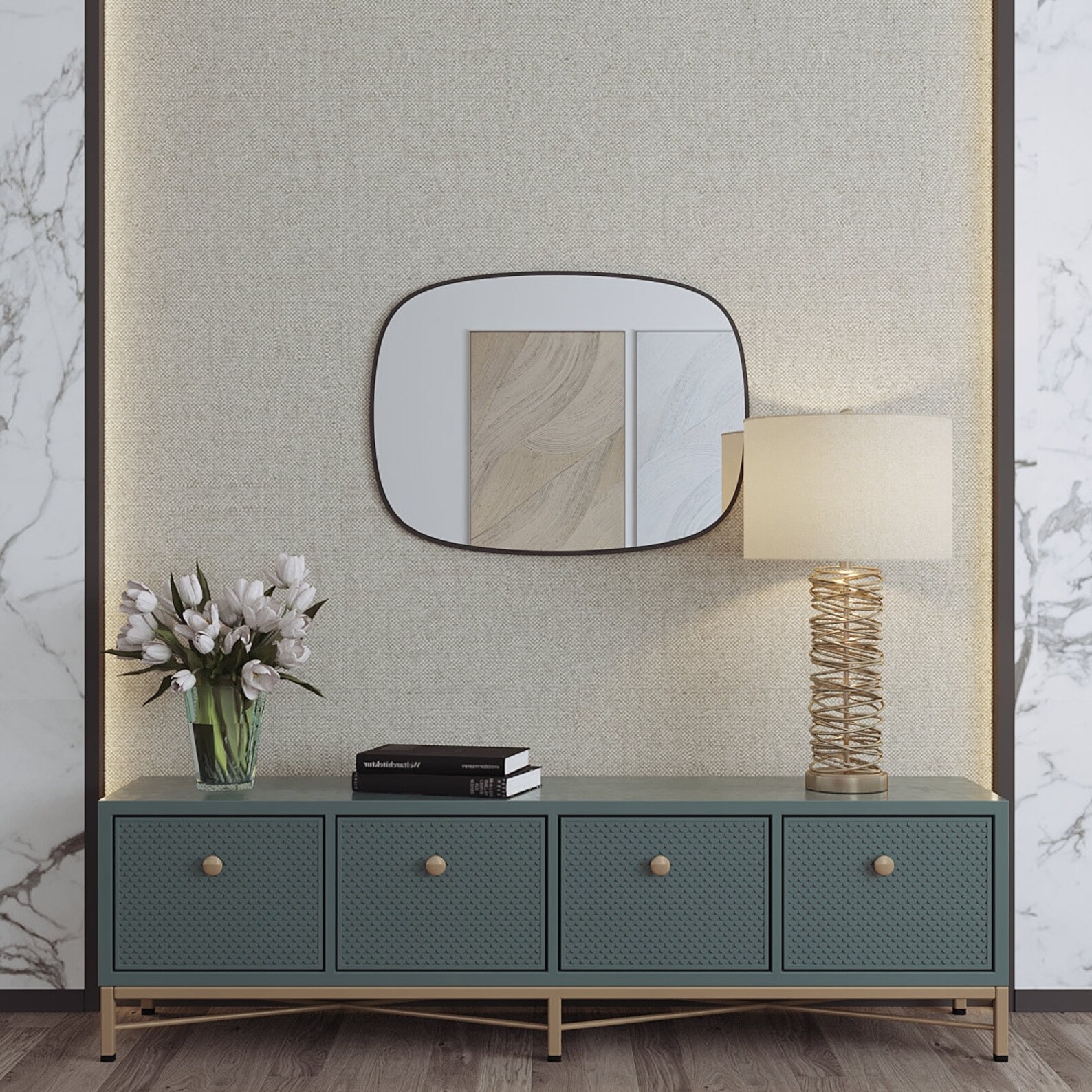 There is a wall hanger behind the mirror.